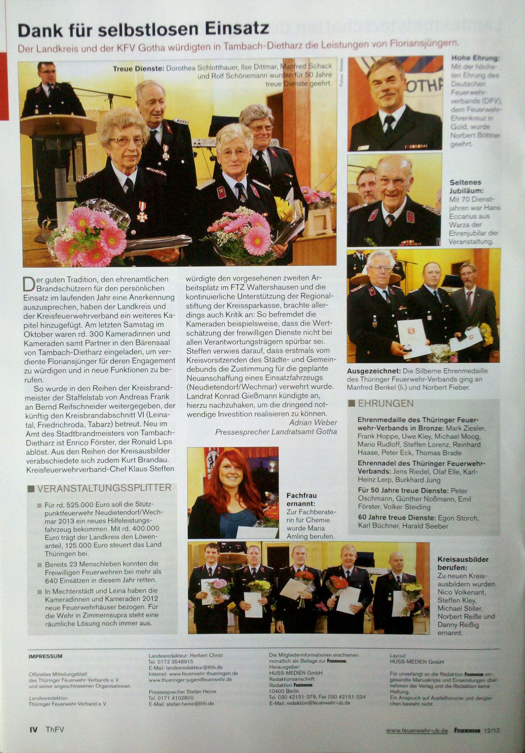 Wir möchten deshalb an dieser Stelle den Artikel (siehe Foto, PDF folgt) zur Veranstaltung aus der ThFV-Mitgliederinformation Dezember 2012 des Thüringer Feuerwehr-Verband e.V. nachreichen.