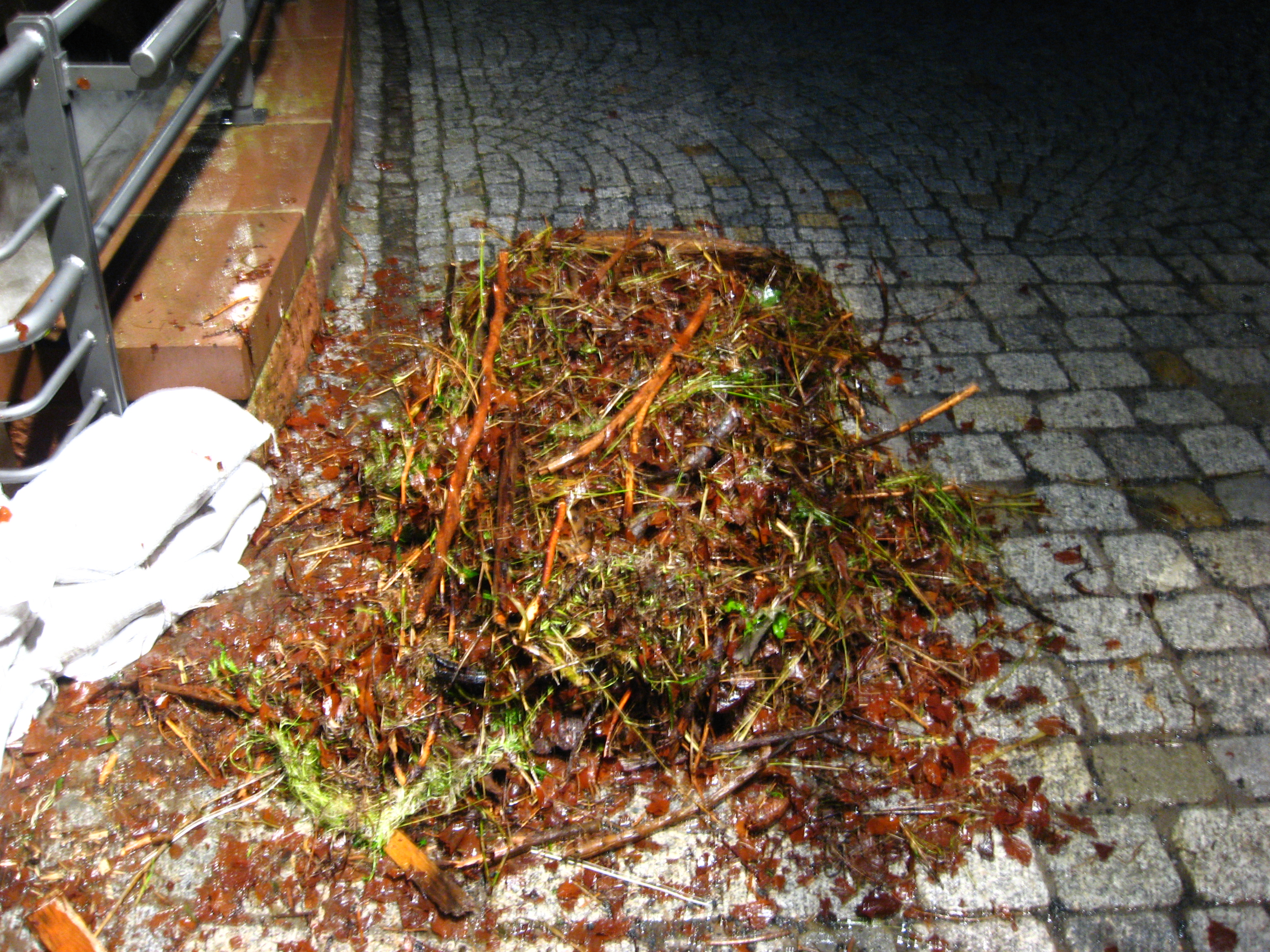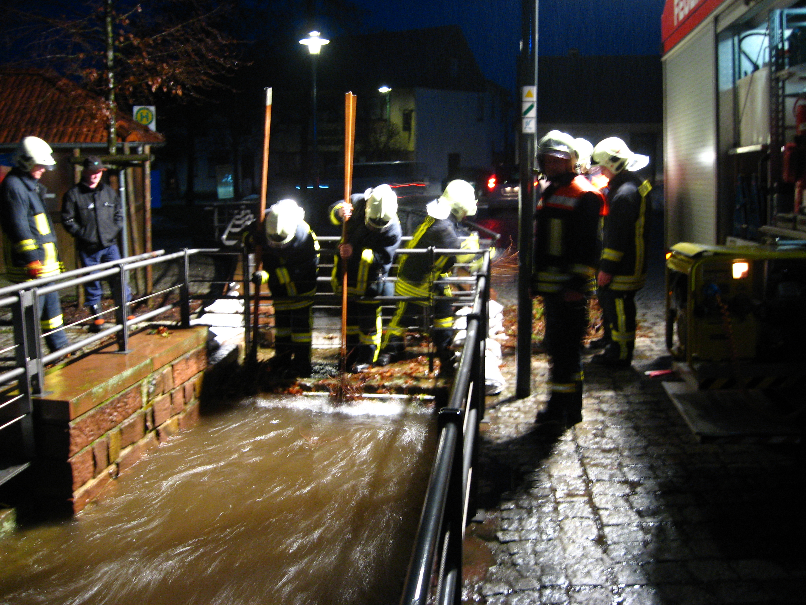 Stille Nacht… heilige Nacht. Spätestens halb acht war für die meisten Kameraden die Nacht auch schon wieder vorbei. Das letzte Fanggitter war wieder zu. Unsere Sandsackmauern haben ihren Dienst sehr gut erledigt, denn ohne sie wäre viel mehr Wasser über die Ufer geflossen. Das Gitter wurde gereinigt. Wenn sich jemand fragt warum das Gitter nicht entfernt wird…wenn größere Äste oder Stämme nicht aufgehalten werden und dann im Ort unterirdisch den Kanal verstopfen …. wäre der Schaden noch größer.