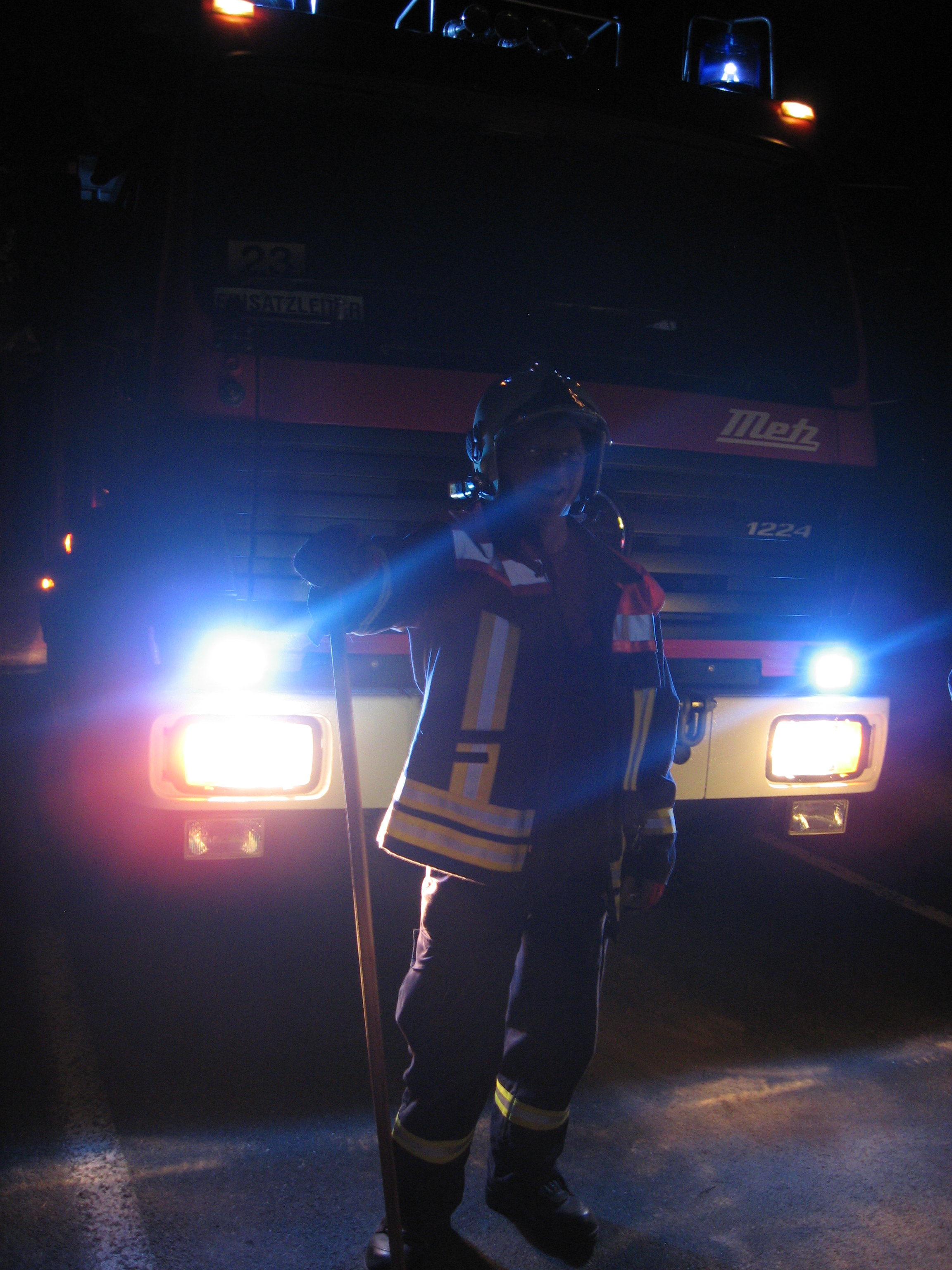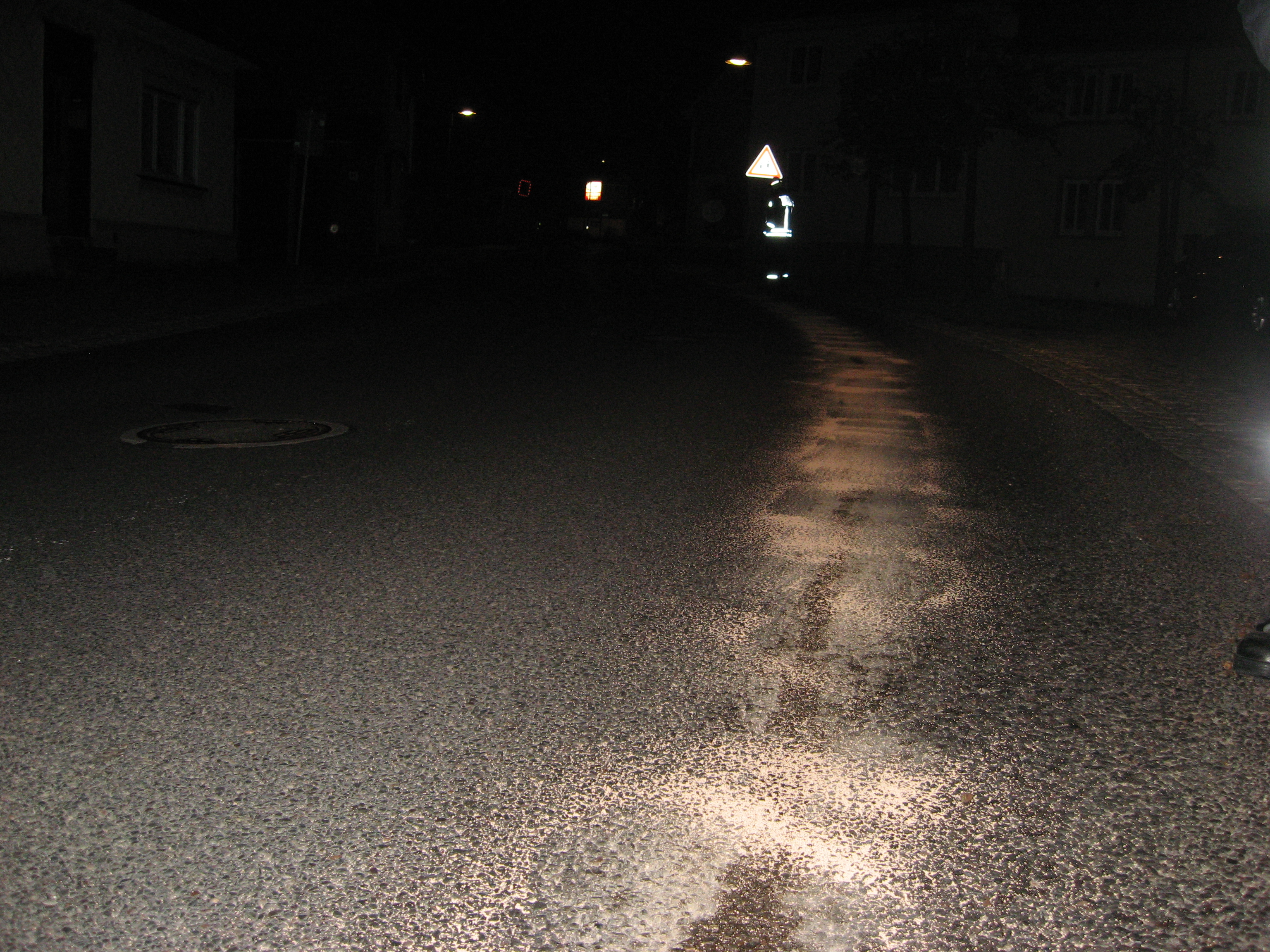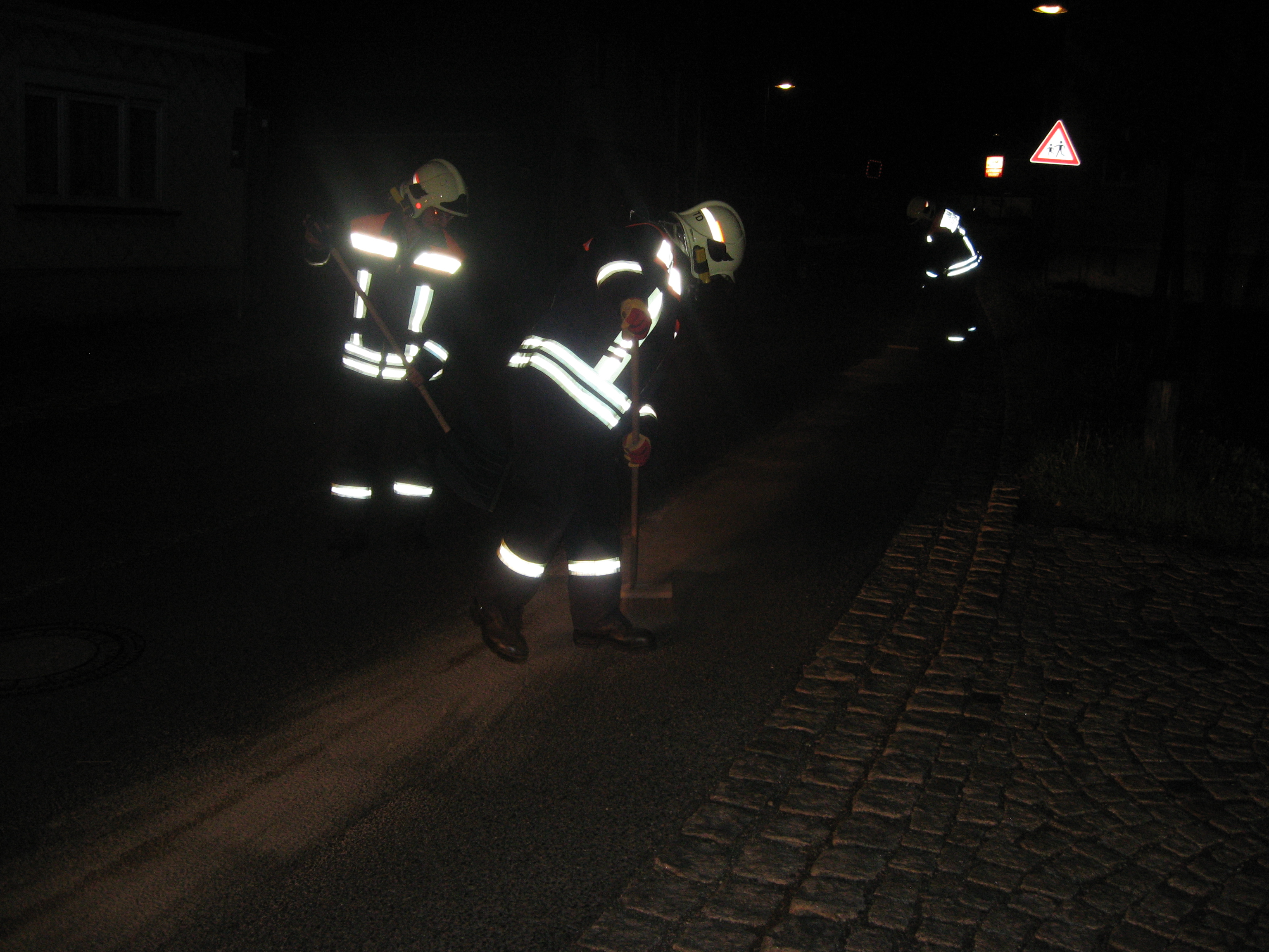 Heute durften wir endlich mal wieder eine Ölspur beseitigen, die abschnittsweise durch den ganzen Ort verteilt wurde.