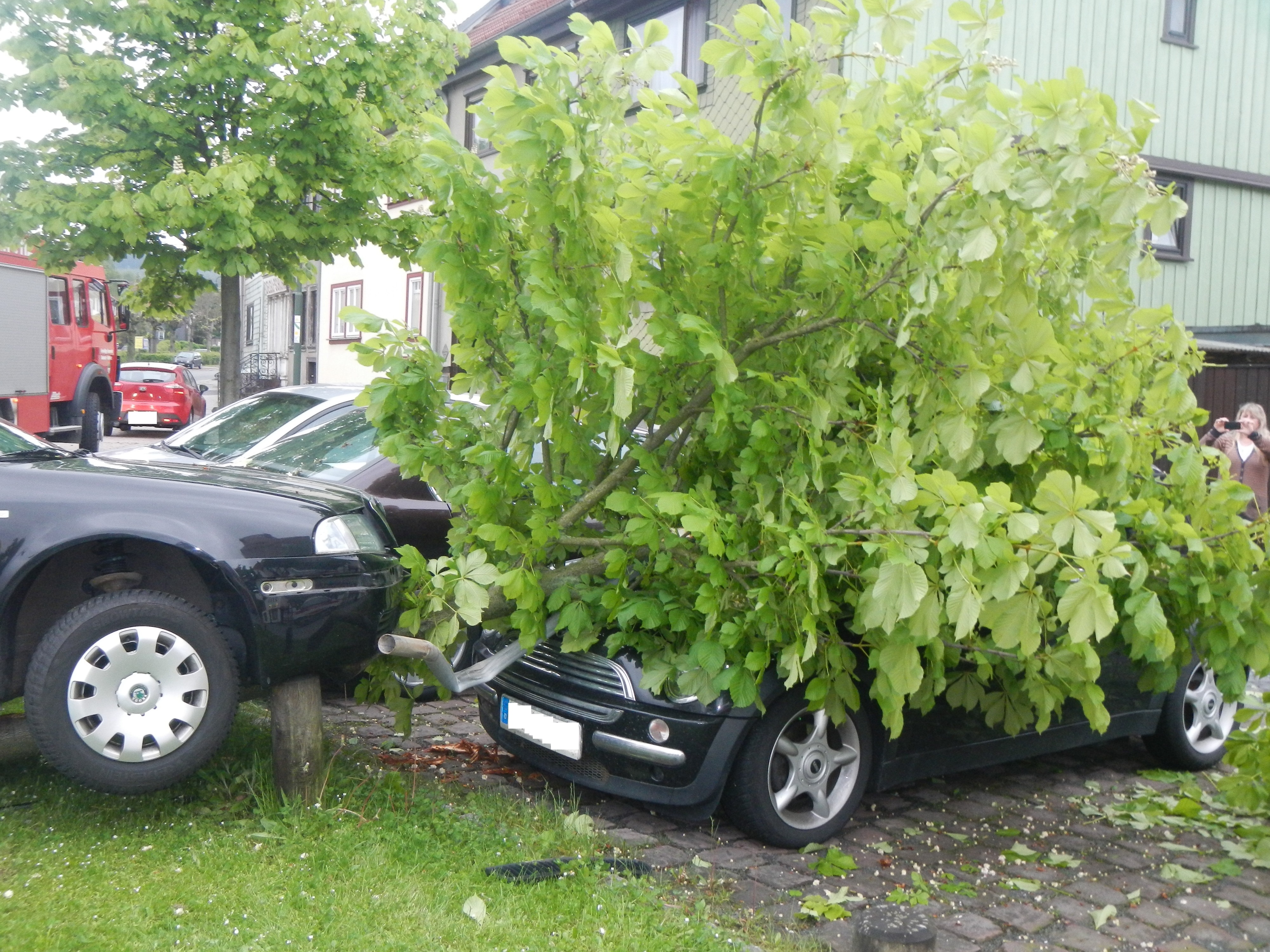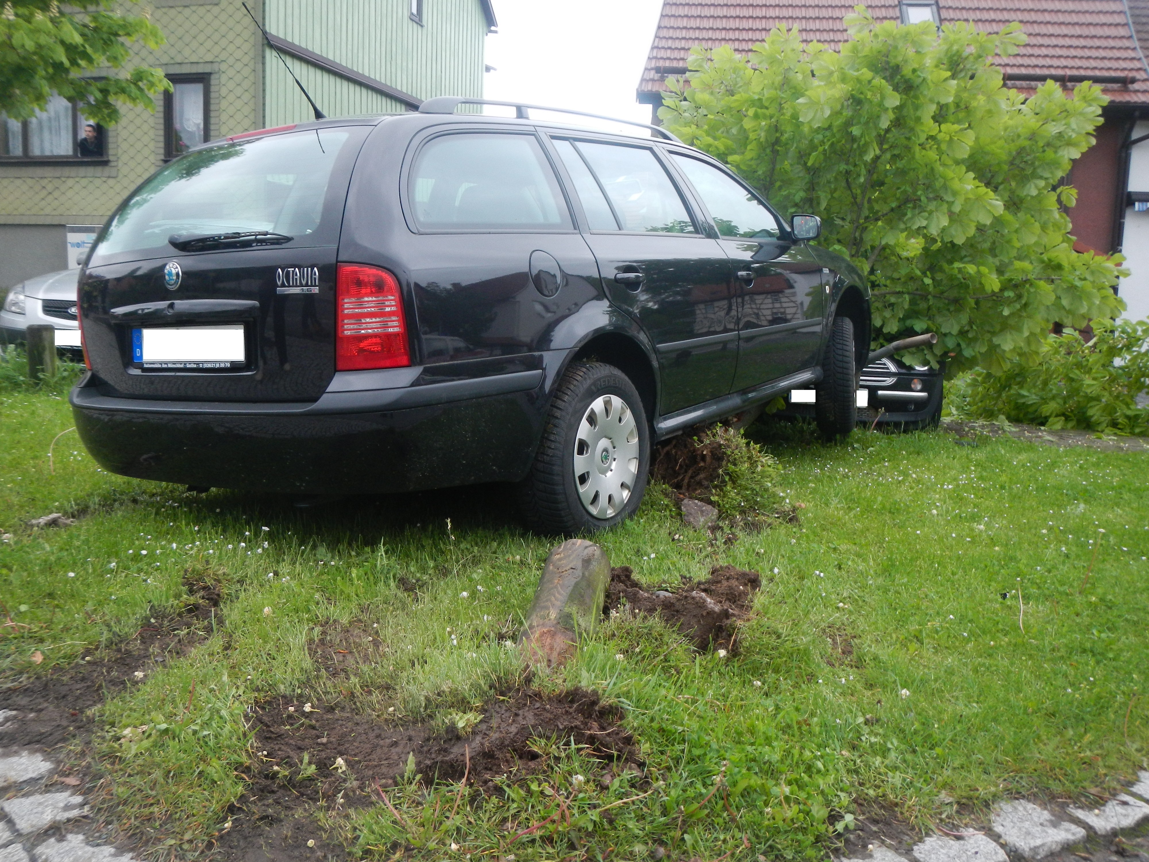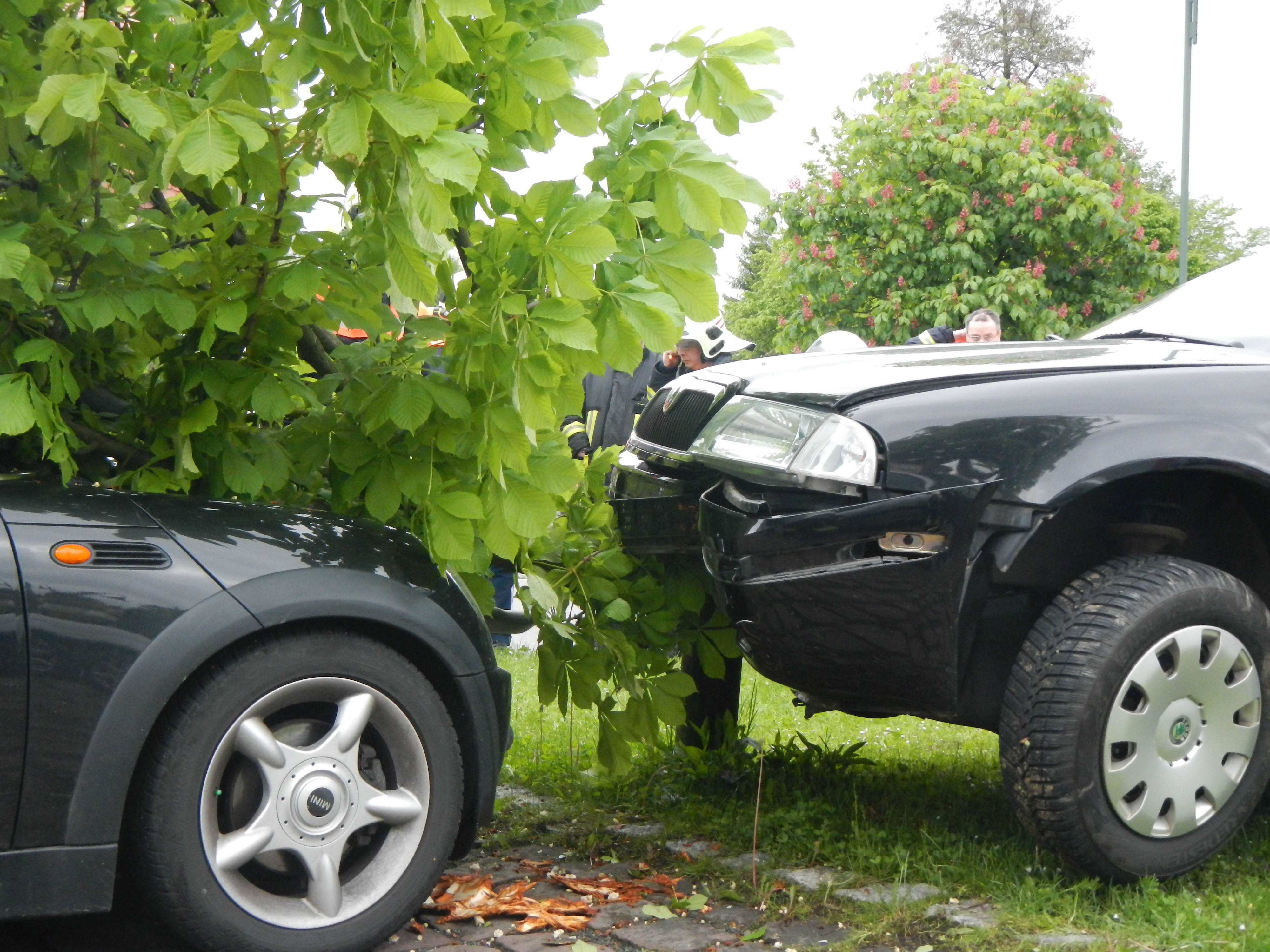 Ein PKW hatte am frühen Morgen etwas zuviel Geschwindigkeit. Deswegen gelang das Abbiegen…nicht ganz. Es wurden ein Verkehrsschild und ein Baum umgefahren und auf einen geparkten PKW gedrückt.   Die Unfallstelle wurde gesichert. Und nachdem der PKW entfernt wurde… mussten wir noch den zerstörten Baum zerlegen.