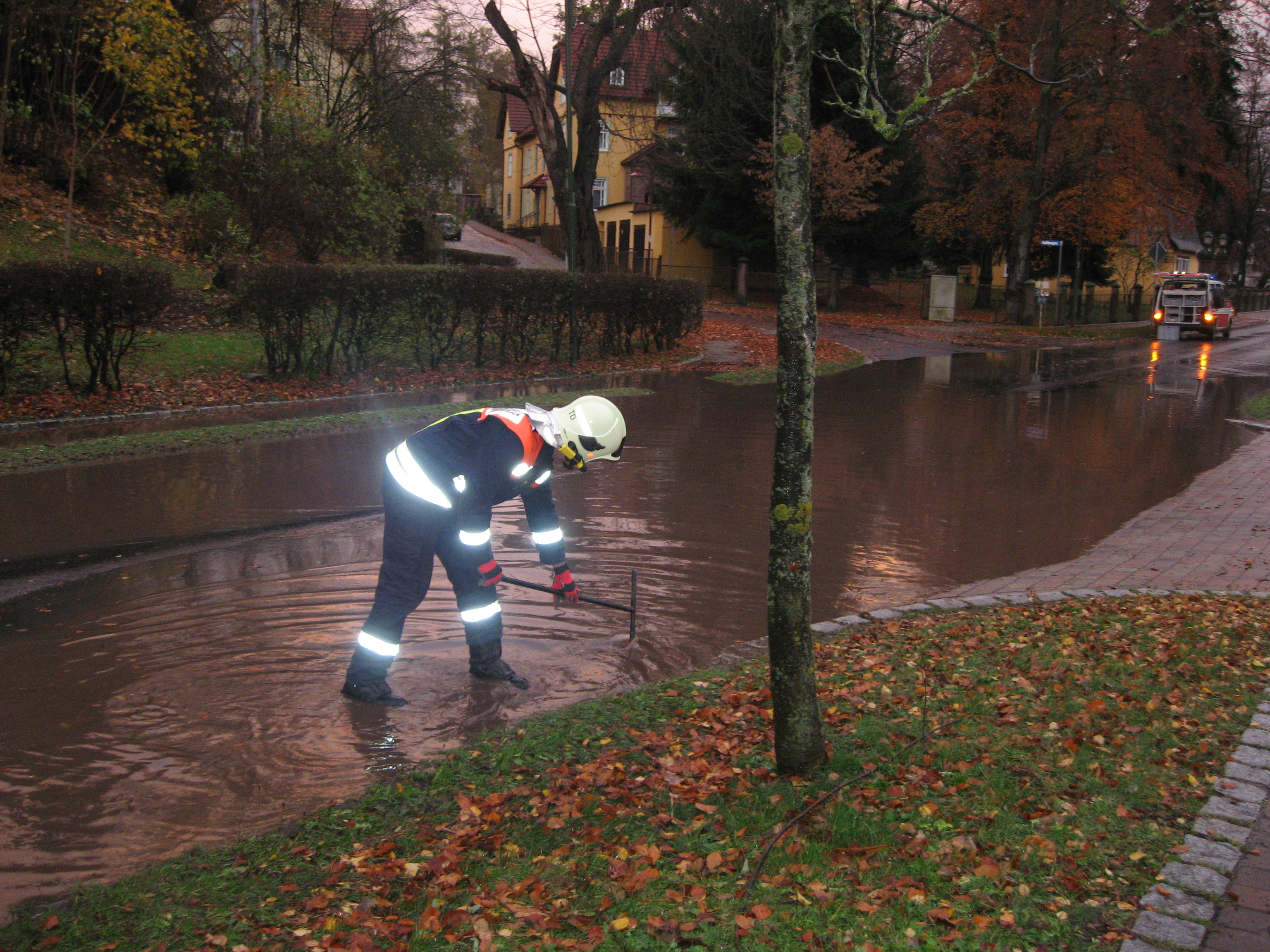 Im Bereich vom Tegut war die Straße ca 15cm überflutet. Die Gullideckel wurden gezogen und die mit Laub gefüllten Eimer entleert. Danach lief alles wieder problemlos ab. Vielen Dank auch an den rücksichtslosen Autofahrer aus Schmalkalden ( Kennzeichen ist notiert), der durch sein Verhalten unsere Sicherheit gefährdet hat. Weiter so!