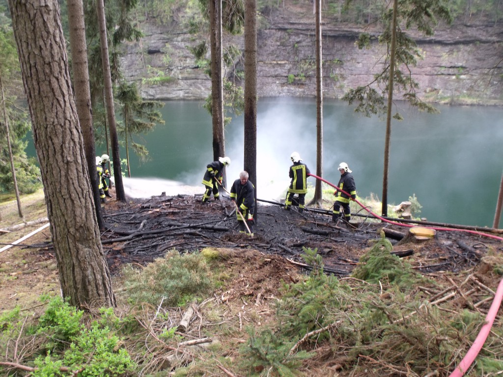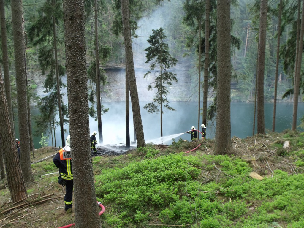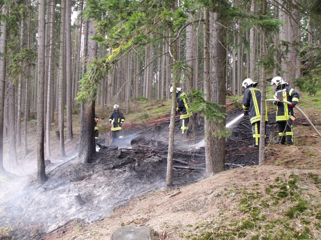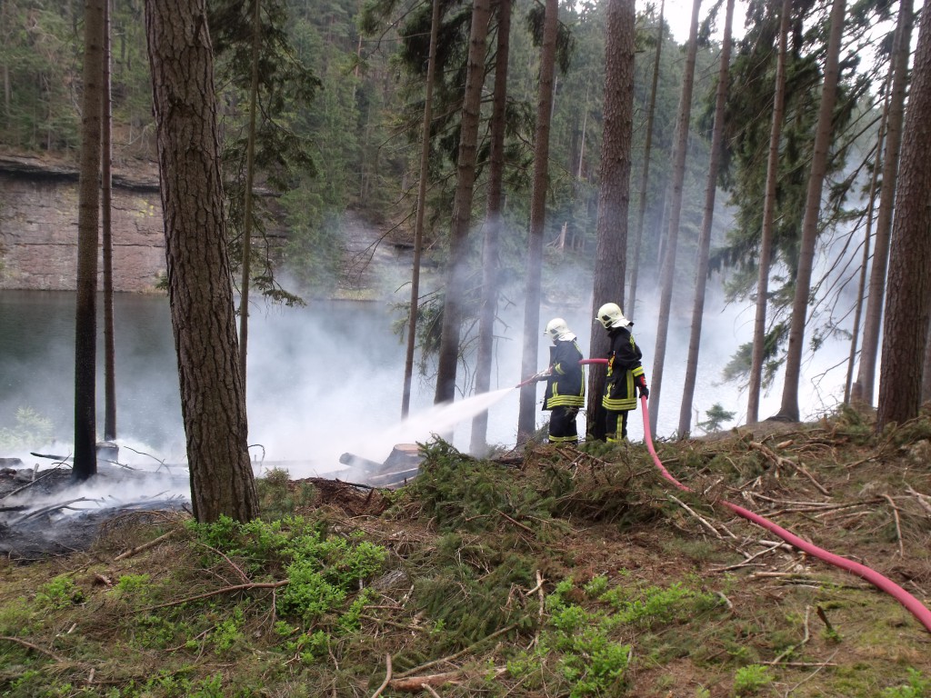 Aus nicht ganz 100% geklärten Umständen, brannte heute ein ca. 10 m x 20 m großes Stück Wald. Glücklicherweise befand sich genau daneben die Gothaer Talsperre, deswegen gab es keine Probleme mit der Löschwassergewinnung. Zur Unterstützung kamen noch die Feuerwehren von Georgenthal und Nauendorf. Das Feuer war nach wenigen Minuten unter Kontrolle und gelöscht. Danke an alle Mitwirkenden.