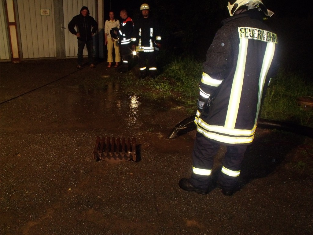 Die Parkteiche liefen über und setzten einen Parkplatz unter Wasser…welches dann in einen Keller laufen wollte. Die Kameraden pumpten bis ca 1 Uhr…