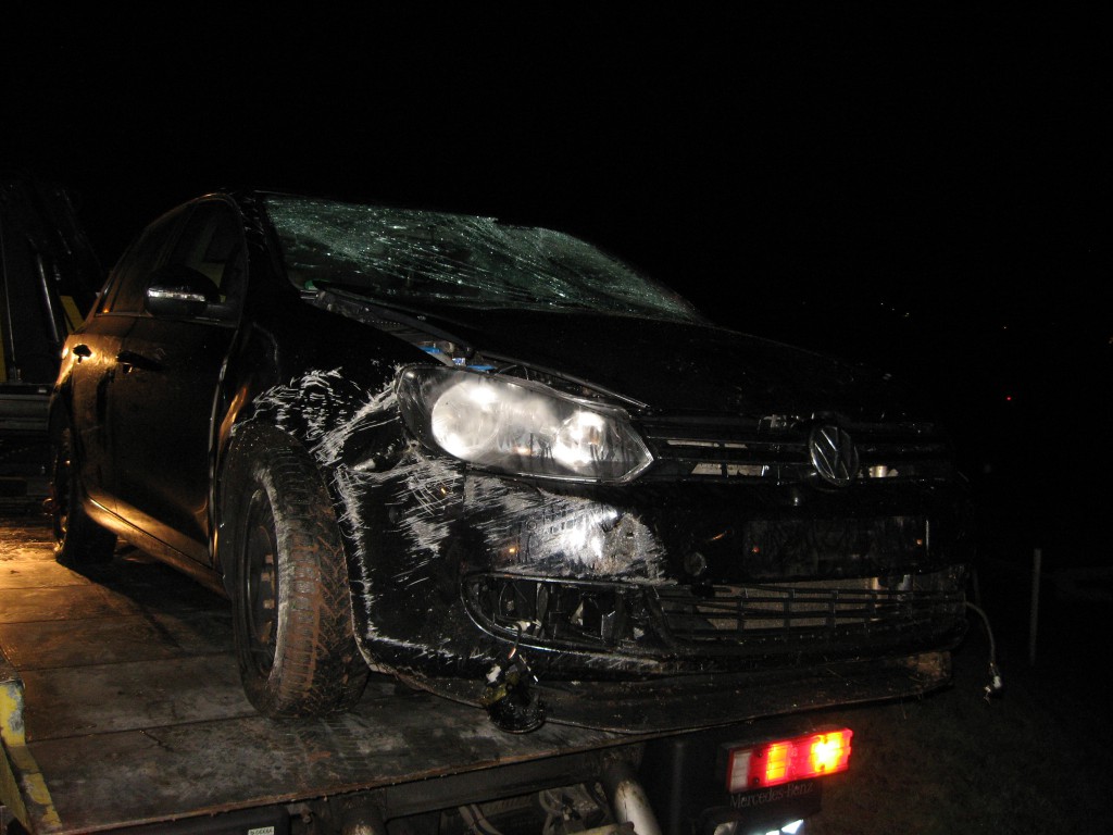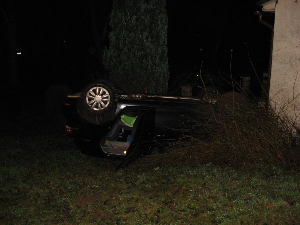 Ein Auto kam von der Straße ab und überschlug sich. Fahrer verletzt. Wurde von den Kameraden befreit und an Rettungsdienst übergeben.