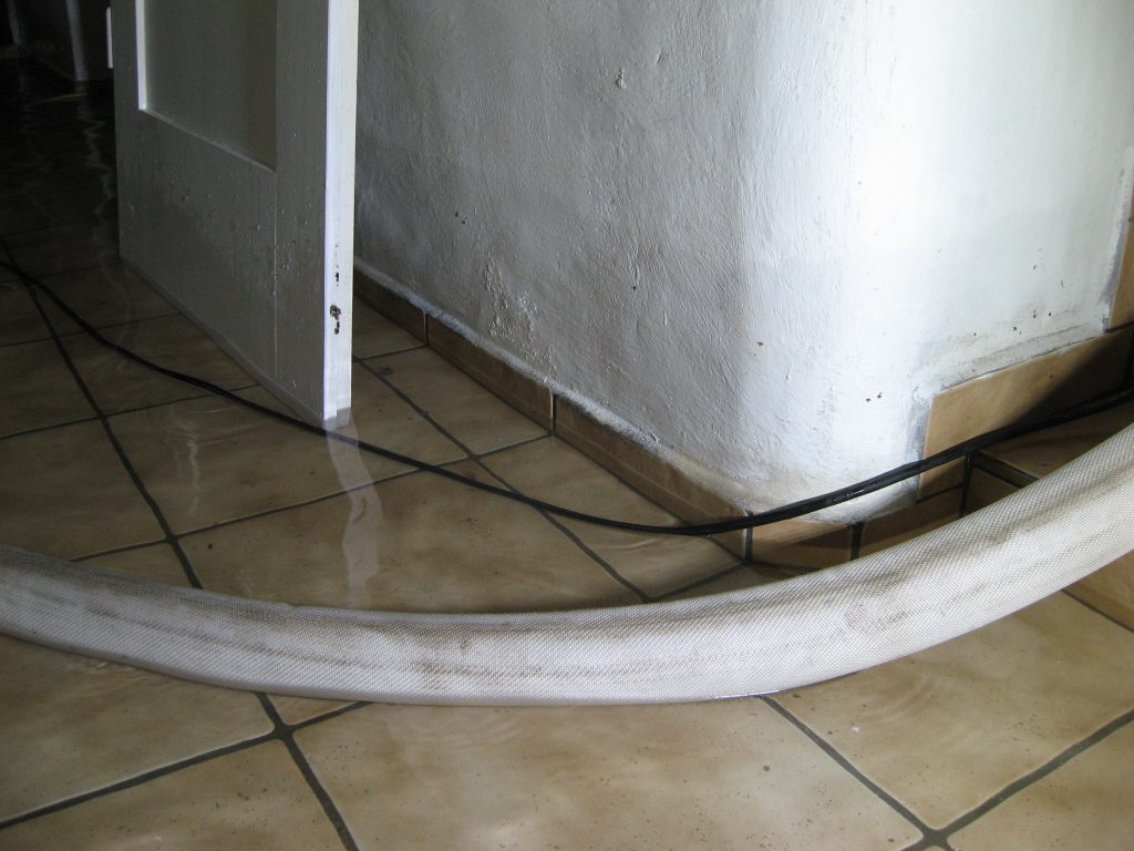 Ein provisorischer Hauswasseranschluss war geplatzt. Am frühen Morgen stand der Keller ca 30 cm unter Wasser.