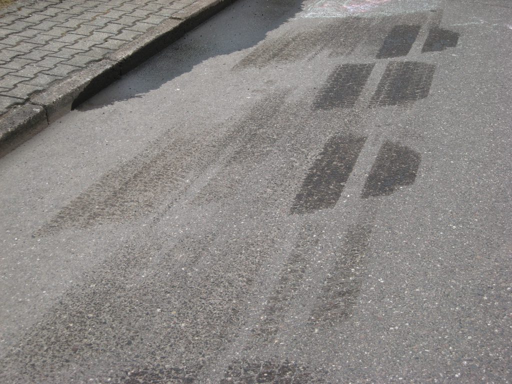 Ein großer Ölfleck befand sich auf der Spittertsraße. Die Betriebsflüssigkeit wurde mit Ölbindemittel gebunden und entfernt.