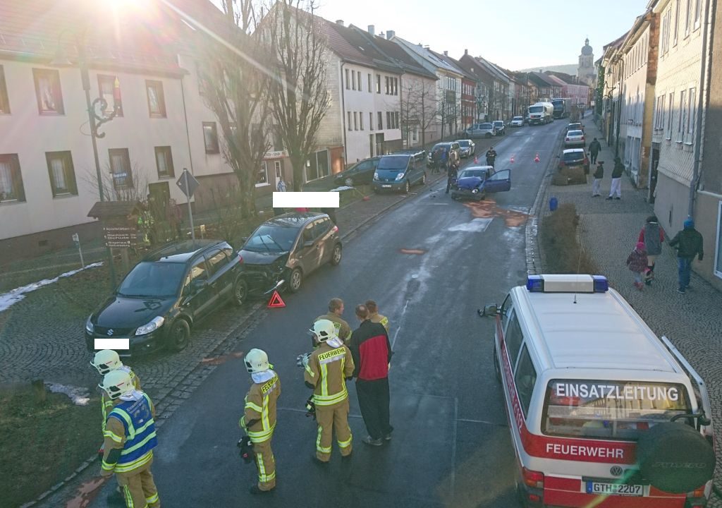 Am Freitag kam es in der Hauptstraße erneut zu einem Verkehrsunfall, bei dem zwei PKW frontal zusammenfuhren. Nach dem Aufprall wurde ein PKW zusätzlich in ein geparktes Fahrzeug geschleudert welches ebenfalls Schäden erlitt. Die Kameraden sicherten die Unfallstelle, kümmerten sich um die verletzten Personen und entfernten die ausgelaufenen Betriebsflüssigkeiten. Es wurden 3 verletzte Personen an den Rettungsdienst übergeben.