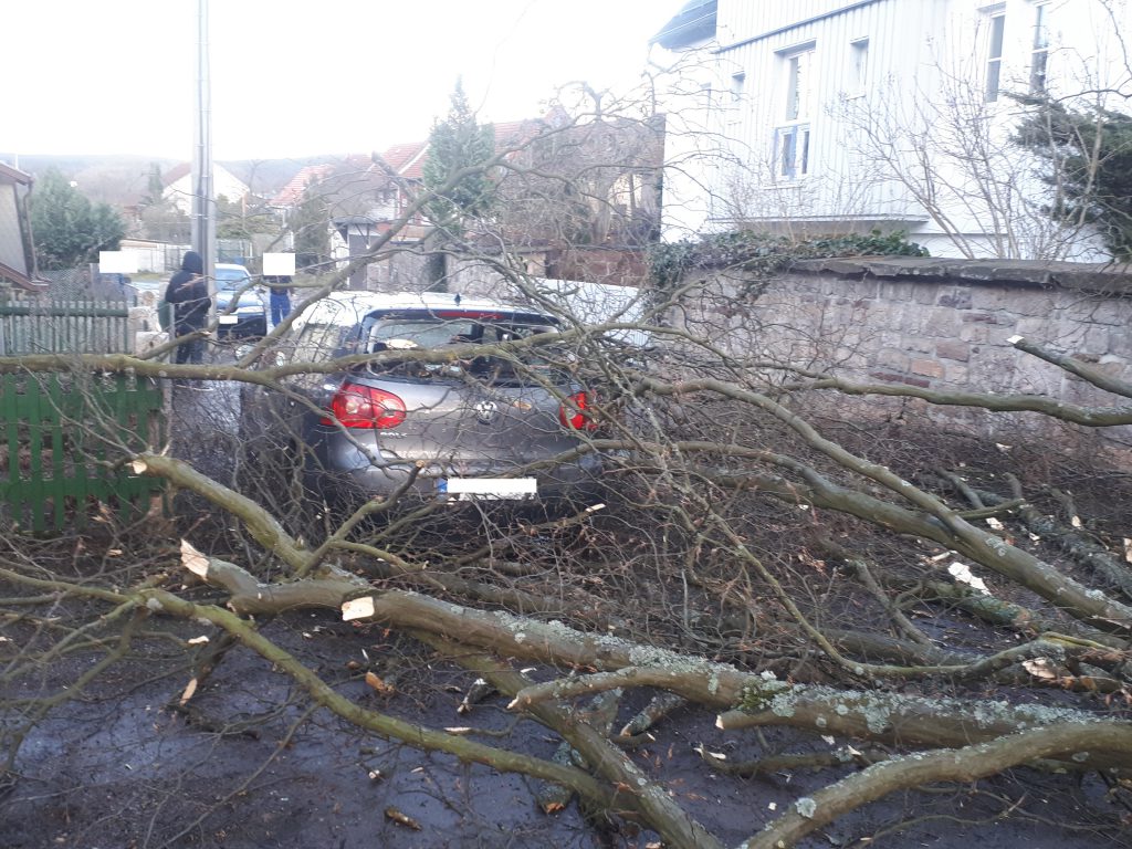 Durch das Sturmtief Eberhard wurde ein Baum auf die Gartenstraße geworfen… ein Auto wurde dabei von den Ästen getroffen. Personen kamen nicht zu Schaden. Der Baum wurde zerlegt und die Straße geräumt. Auftrag erledigt….